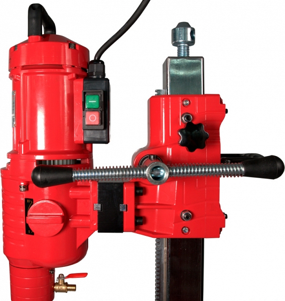 - Встроенные в каретку регулируемые направляющие обеспечивают легкую и плавную подачу сверлильной коронки