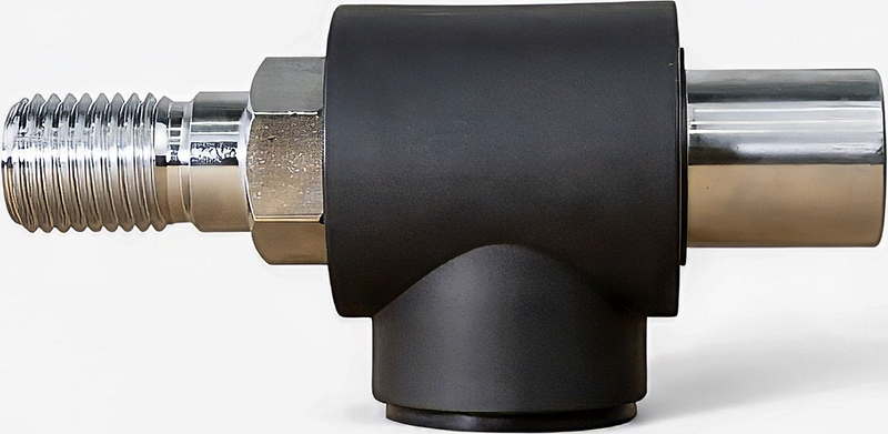 - Тройник устанавливается между шпинделем дрели или двигателя установки для алмазного бурения с резьбой 1 1/4" UNC или 1/2" G и алмазной коронкой с резьбой 1 1/4" UNC