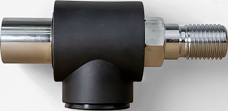 - Второй патрубок соединяется со шпинделем дрели или двигателя установки для алмазного бурения, третий – с алмазной коронкой