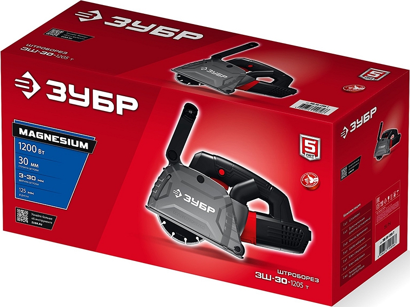 Штроборез Зубр Мастер ЗШ-30-1205 Т (Zubr Master ZSH-30-1205 T) – улучшенный бытовой инструмент для выполнения штроб глубиной до 30 мм и шириной 3 – 30 мм в кирпиче, пенобетоне и легком бетоне для прокладки проводки и труб. Мощный двигатель позволяет резать без перегрузки и потери скорости. Надежный хват двумя руками с регулируемой рукояткой и погружная система дисков для удобства работы.